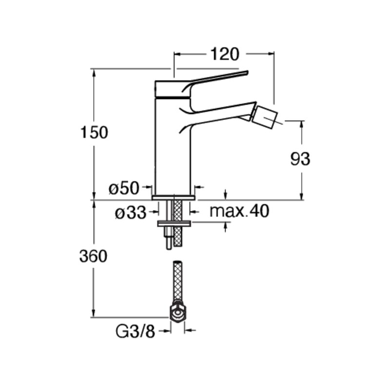 Single-control deck-mounted single-hole bidet mixer, with mechanical mixing, without waste